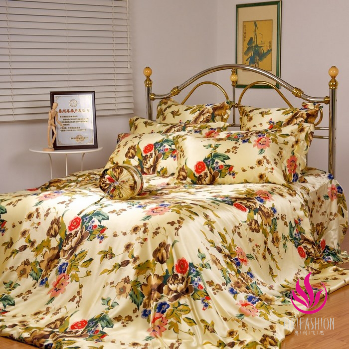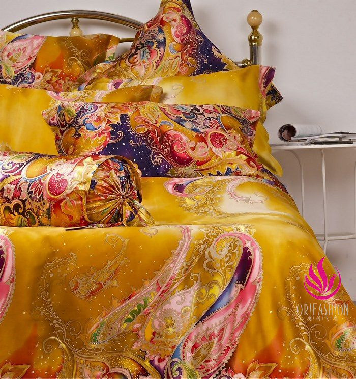 Pure Silk Charmeuse Bedding Set Bright Printed Pattern BSS033