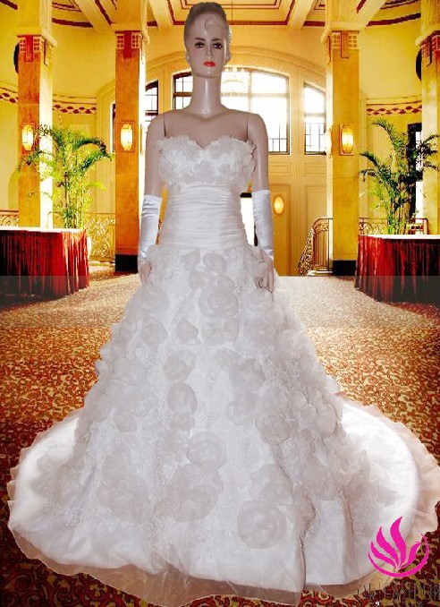 Romantic Designer Bridal Gown / Wedding Dress With hand-made flowers RC080