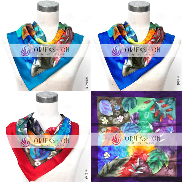 >> Hand Painted Floral Pure Silk Scarf with Wide Edge