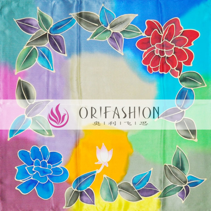 Beautiful Hand Painted Pure Silk Scarf with Wide Edge