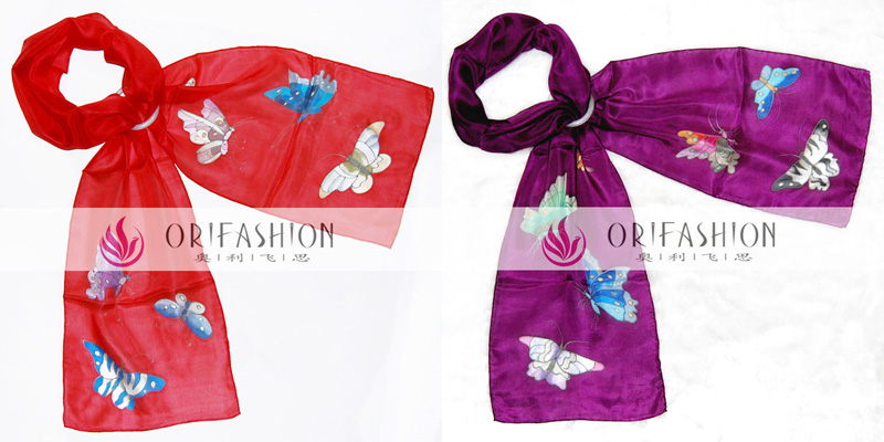 >> Beautiful Hand Painted Butterfly Sheer Pure Silk Long Scarf