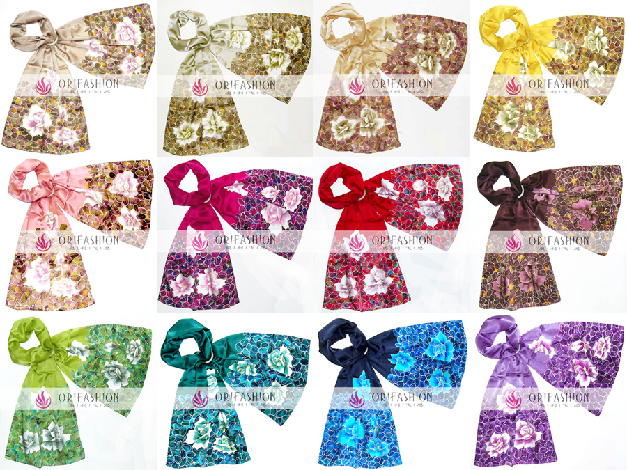 >> Romantic Hand Painted Floral Pure Silk Long Scarf